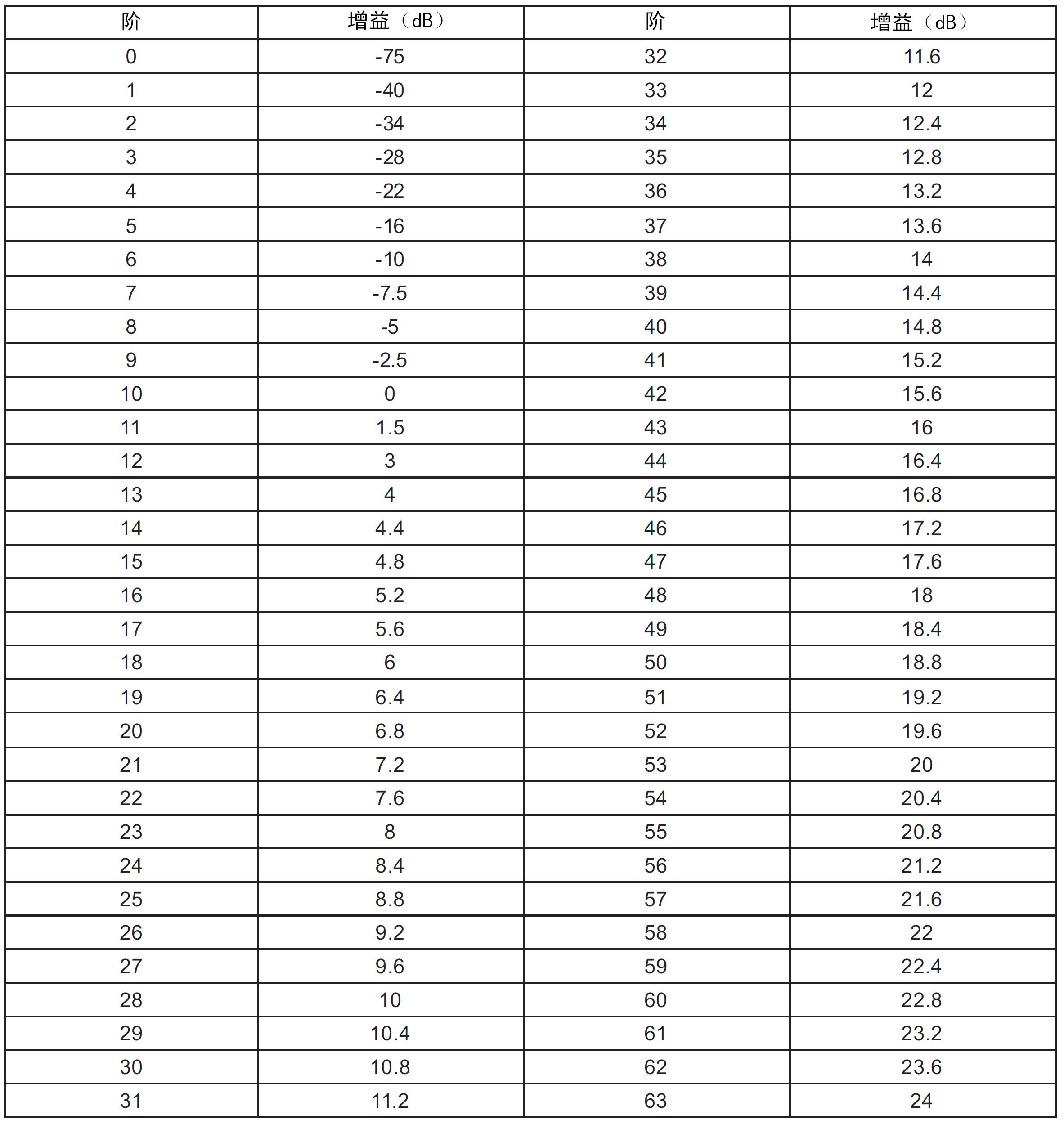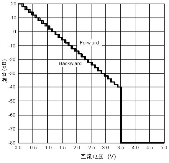 如下表所示。為了使音量控制端噪聲影響最小,影響增益電平的滯后和延遲被考慮。滯后對(duì)應(yīng)步寬的一半,如下圖所示。