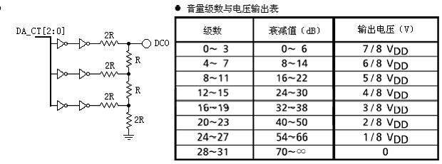 音量電平計量器直流輸出在內(nèi)部連接到數(shù)模轉換器(R/2R型)。通過音量電平產(chǎn)生八級輸出電壓。由于輸出阻抗≈22KΩ(典型)是高電平,如果輸入阻抗緊接著被設置為低電平,則必須設置緩沖器。