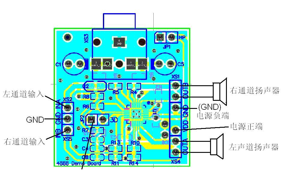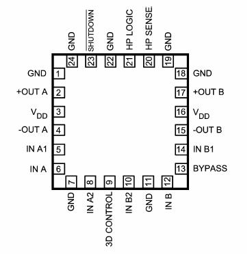 在3D CONTROL 上加高電平將激活3D 效應,同時會引起增益的增大,倍增因數(shù)是(1 +20kΩ/R5)。如設R5 值為20kΩ,則3D效應激活時會導致增益增大到原來的(1 + 20kΩ/R5)2 倍或6dB?筛兄3D 量還與其它許多因素有關(guān)比如揚聲器的位置以及離收聽者的距離。因此使用者在應用中可以嘗試多種R5 和C3D 的搭配來獲得最佳的3D 效果,3D 效果沒有好壞之分,對于每一個用戶個體只有適合與不適合之分。同時注意,當3D 啟動時,R3 和R4 代替了R2,R6 和R7 代替了R8。