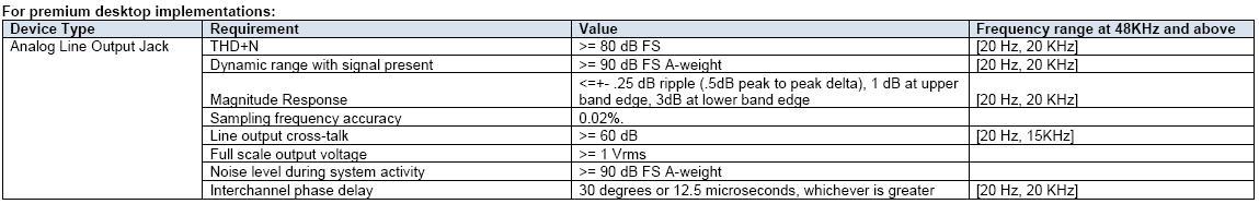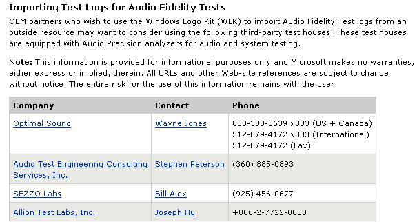 Microsoft 于2007年6月1日開始強(qiáng)制要求系統(tǒng)廠商如果想要拿到Vista 的Logo,就必須通過Windows Logo Program(WLP3.0X)中針對(duì)聲音質(zhì)量的規(guī)范SYSFUND-0118(Premium),SYSFUND-0127(Basic)。因此業(yè)界首次有了針對(duì)電子/計(jì)算機(jī)產(chǎn)品訂下聲音質(zhì)量的標(biāo)準(zhǔn)規(guī)范,也因?yàn)镸icrosoft在產(chǎn)業(yè)的領(lǐng)導(dǎo)地位使其能成為廠商愿意配合和改進(jìn)產(chǎn)品質(zhì)量的聲音規(guī)范。