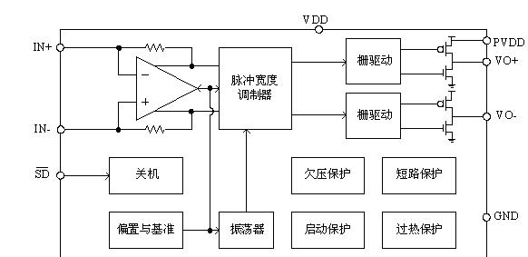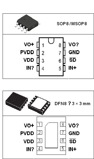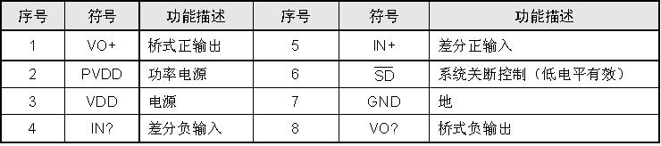 l 5V電源電壓下,帶4Ω負載輸出功率3W,總諧波失真10%。