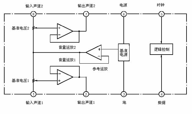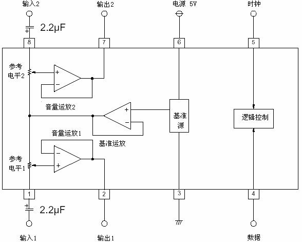 M62429串行數(shù)據(jù)控制的雙聲道電子音量控制器IC應(yīng)用電路原理圖說明