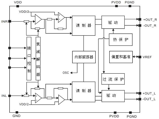 4)由于芯片中的數(shù)字音量控制具有很大的增益,所以在增大其音量時要注意不要讓輸入信號過大而使信號產(chǎn)生削波限幅,甚至還可能使芯片損壞。