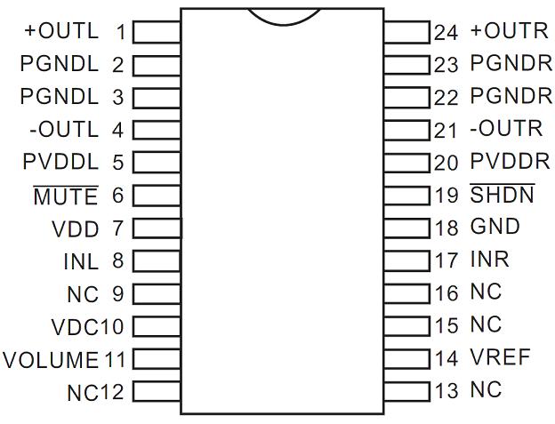 3. 由于芯片中的數(shù)字音量控制具有很大的增益,所以在增大其音量時要注意不要讓輸入信號過大而使信號產(chǎn)生削波限幅,甚至還可能使芯片損壞。
