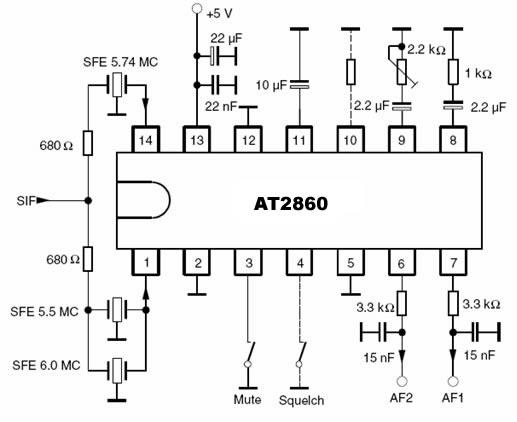U2860是一款雙通道FM 伴音解調(diào)器,能有效地處理所有TV FM 標(biāo)準(zhǔn),即從4.5MHz 到6.5MHz(包括標(biāo)準(zhǔn)的M,B/G,I 以及D/K 制式).包含兩路相同的電視伴音中頻通道,每一通路含有一個限幅放大器,PLL FM 解調(diào)器和一個音頻放大器。而且,電路還含有一靜躁功能、靜音開關(guān)以及內(nèi)部穩(wěn)壓模塊。該電路工作時無需調(diào)試,同時所需外圍元器件少,采用5 伏電源,可用于TV 、VCR 以及其他多媒體用途中。AT2860與其管教兼容。