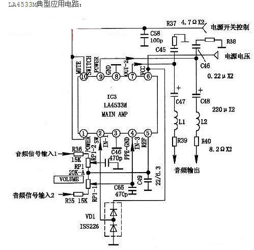 LA4533M耳機驅(qū)動音頻功率放大器IC功能特點及應用電路原理圖說明