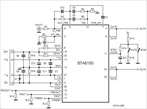 每個(gè)STA5150器件都包括一個(gè)200W的音頻功率放大器通道,這個(gè)放大器主要用于多聲道音響系統(tǒng),如視聽(tīng)接收機(jī)中常用的5.1聲道環(huán)繞聲,F(xiàn)有其它的配備BASH的音頻功放包括2x100 STA575、2x70W STA550 和可以配置成4x50W 到 2x50W+ 1x100W的四通道功放STA530。這些功放配合一個(gè)數(shù)字處理器STABP01工作,這個(gè)處理器通過(guò)從功放級(jí)傳來(lái)的參考反饋信號(hào),可以控制一個(gè)降壓變換器,實(shí)現(xiàn)BASH電源電壓變化技術(shù)。