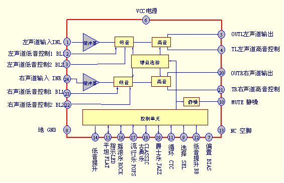 左聲道低音控制管腳1,在此腳與BL2之間接一只電容