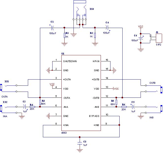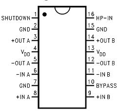 LM4863D是一個(gè)雙路音頻功率放大器.它能夠在5V電源電壓下給一個(gè)4Ω負(fù)載提供THD小于1%、最大平均值為2.2W的輸出功率。另外,在驅(qū)動(dòng)立體聲耳機(jī)時(shí)耳機(jī)輸入引腳可以使放大器工作在單邊模式。LM4863D是為提供高保真音頻輸出而專門(mén)設(shè)計(jì)的.它僅僅需要少量的外圍元件,為了簡(jiǎn)化音頻系統(tǒng)設(shè)計(jì),LM4863D集雙路橋式揚(yáng)聲器放大器和立體聲耳機(jī)放大器與一體。LM4863D還有外部控制的關(guān)閉模式,立體聲耳機(jī)放大器模式和熱保護(hù)關(guān)閉模式,還有減少開(kāi)機(jī)噪聲功能。采用DIP-16封裝。