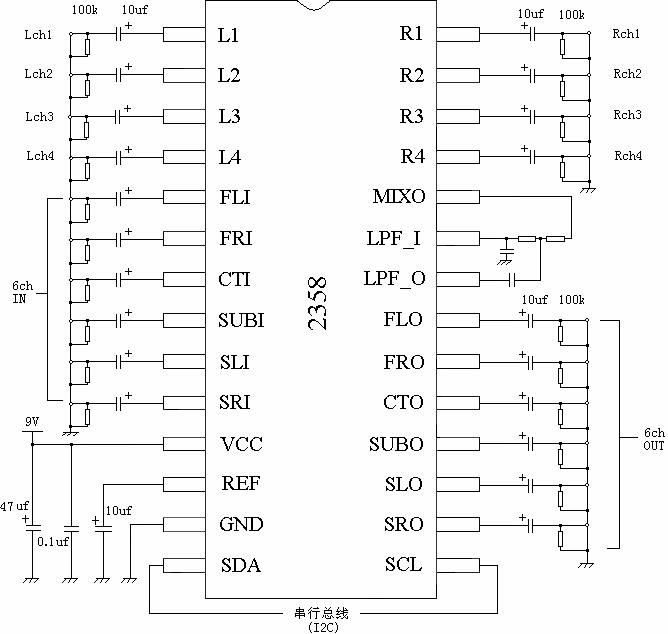 內(nèi)置2聲道——6聲道轉(zhuǎn)換器和副低頻低通濾波器;