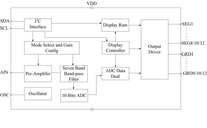 l 用戶可以通過(guò)I2C總線接口讀取音頻信號(hào)并自行設(shè)定音樂(lè)隨動(dòng)顯示方式