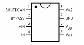 4871D是一個(gè)BTL橋連接的音頻功率放大器。它能夠在5V電源電壓下給一個(gè)4Ω負(fù)載提供THD小于10%、平均值為3.2W輸出功率。在關(guān)閉模式下電流的典型值為0.6μA。4871D是為提供大功率,高保真音頻輸出而專門設(shè)計(jì)的。它僅僅需要少量的外圍元件,并且能工作在低電壓條件下(2.0V-6.5V)。4871D不需要耦合電容,自舉電容或者緩沖網(wǎng)絡(luò),所以它非常適用于小音量和低重量的低功耗系統(tǒng)。
