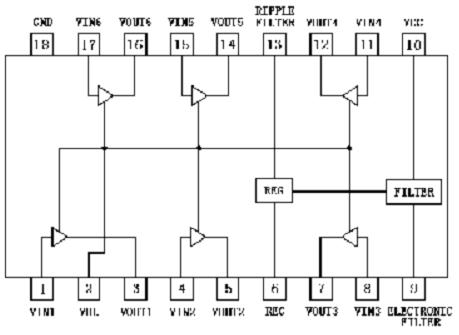 D2038 利用電位器同時調(diào)節(jié)六聲道音量大小的控制IC性能特點(diǎn)及應(yīng)用電路說明