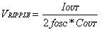 為了降低噪聲和輸出文波,建議采用低ESR的陶瓷電容,且不小于0.47uF。輸出紋波峰值有公式表示: