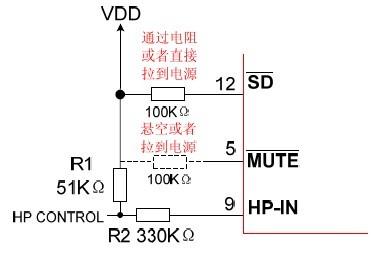 3.關(guān)于Pin12(/SD),Pin5 (/MUTE),Pin9(HP-IN)內(nèi)部上拉和下拉問題