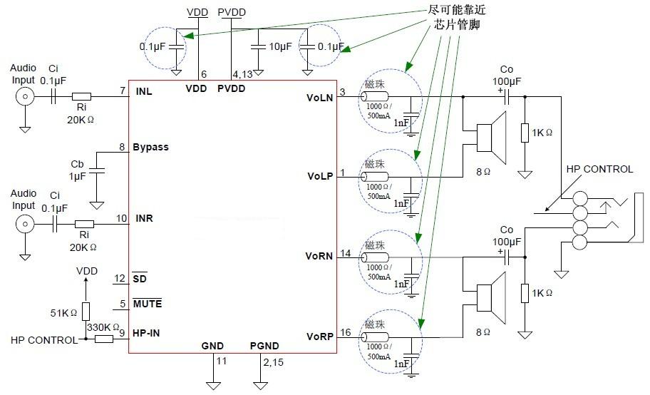 要充分發(fā)揮PAM8403/CS8403的性能。應(yīng)用時從以下幾個方面可以最大限度降低EMI干擾: