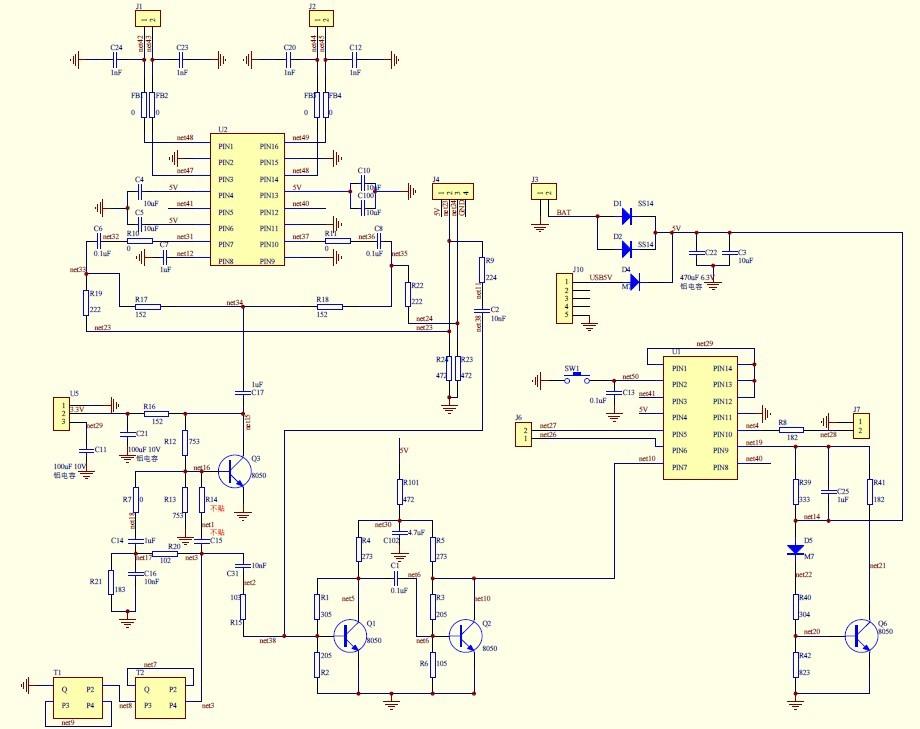 MCU主要用來控制開關(guān)機(jī),電流電壓及音頻信號的檢測,功放IC用來放大音頻信號。