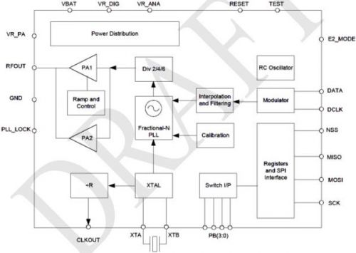 SX1230在免許可證的315、434、868和915MHz ISM頻段下工作,采用MLPQ- 24(4x4)封裝,具有自動化PLL校準功能并完全集成了VCO和環(huán)路濾波器。