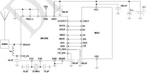 SX1230可用在RKE,遙控和安全系統(tǒng),語音和數(shù)據(jù)RF通信鏈接,過程以及建筑物/家庭控制、RFID和自動抄表等。
