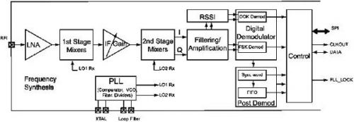 SX1210/13是Semtech的集成UHF頻段接收器。SX1210用于868MHz、915MHz頻段,而SX1213用于433MHz頻段,其它各參數(shù)完全相同且管腳兼容。SX120/13的接收電流不到3mA,為業(yè)界最低,與競爭對手相比,接收電流要低6倍。設計應用于無線報警器、安全,家庭自動化中的傳感器網(wǎng)絡,以及自動化抄表領域。