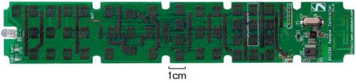 當遙控器的應用要求多于15個按鍵或RF協(xié)議、數(shù)據(jù)包比較復雜時,可以使用SX1230的單片機模式實現(xiàn)。下圖顯示了一個電路板尺寸是4x22cm的42鍵遙控器樣機照片,這個遙控器同時兼容紅外方式。