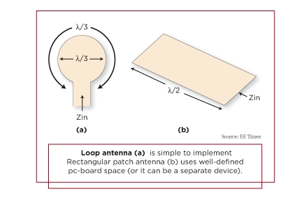 圖1:環(huán)形天線(a)易于實現(xiàn)。矩形塊天線(b)使用規(guī)劃得很好的PCB空間(它也可是一個分立器件)