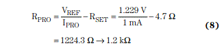 我們選用1mA值作為保護電流(IPRO),以計算RPRO值: