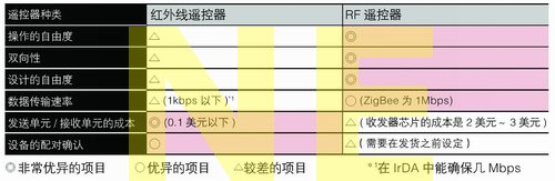 表1 RF遙控器和紅外線遙控器的性能比較