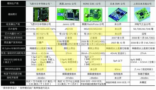 除索尼公司以外,其它家電廠商對于IEEE 802.15.4標(biāo)準(zhǔn)也非常關(guān)注。在這樣的背景下,一直在推動ZigBee標(biāo)準(zhǔn)的芯片及模塊供應(yīng)商,也都把采用ZigBee標(biāo)準(zhǔn)或IEEE 802.15.4標(biāo)準(zhǔn)的無線收發(fā)器轉(zhuǎn)向RF遙控器市場(見表3)。尤其是飛思卡爾半導(dǎo)體公司在2006年中期又開發(fā)出RF遙控器的參考電路板,表示出進入新市場的積極態(tài)度。