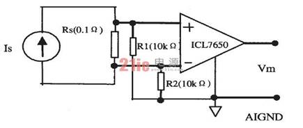 蓄電池輸出信號(hào)是一種浮動(dòng)信號(hào)。采用差分測(cè)量方式會(huì)最大限度地減小對(duì)被測(cè)電路的影響,同時(shí)也會(huì)減小測(cè)量誤差。在本調(diào)理電路中,采用高精度低漂移的集成運(yùn)算放大器ICL7650制作的差動(dòng)放大器將串入充放電線路的精密小電阻之上的差動(dòng)信號(hào)作為電流檢測(cè)信號(hào)。將并入蓄電池的大電阻分壓器獲得的小信號(hào)作為電壓信號(hào)。為消除干擾,用兩個(gè)等值電阻分別接于差動(dòng)放大器的兩輸入端與信號(hào)地之間。將兩個(gè)差動(dòng)放大器的輸出信號(hào)送人USB采集模塊的兩個(gè)輸入通道以完成信號(hào)調(diào)理及采集。調(diào)理電路見圖2、圖3。
