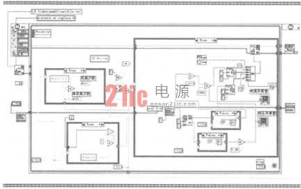 總體采用兩幀組成的平鋪順序結(jié)構(gòu)(Flat Sequence),第一幀完成的是數(shù)據(jù)采集及顯示、存儲(chǔ);第二幀完成數(shù)據(jù)計(jì)算、回收及顯示運(yùn)算結(jié)果。圖6給出的是第一幀圖形化程序。