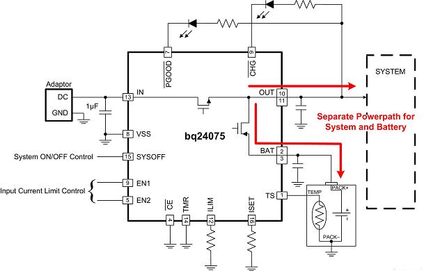 電池充電器的一般方法是將系統(tǒng)直接連接到電池,讓充電器同時(shí)為電池和系統(tǒng)供電。然后,對(duì)系統(tǒng)的總電流進(jìn)行穩(wěn)壓,這樣做存在幾個(gè)問題。特別是低電池電量啟動(dòng)、終止干擾和早期計(jì)時(shí)器超時(shí)等問題。電源路徑管理通過對(duì)電池電流和系統(tǒng)電流進(jìn)行分別監(jiān)測(cè),消除了這些問題[2]。