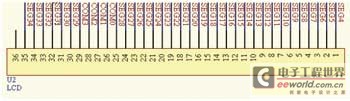 本設(shè)計(jì)采用的ST20P18單片機(jī),其內(nèi)核中自帶控制/驅(qū)動(dòng)液晶模塊,該LCD(圖3)顯示模塊是8×40點(diǎn)陣,常用于遙控設(shè)備的液晶顯示。液晶顯示的主要控制引腳為COM0~COM7。本設(shè)計(jì)只用到COM0~COM3。