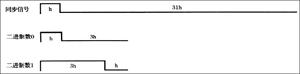 對(duì)應(yīng)于每一種狀態(tài),編碼芯片內(nèi)部能夠生成一種特殊的編碼,這種編碼也是由“1”和“0”組成,但并不是簡單的用高電平代表“1”,用低電平代表 “0”,而是用高電平與低電平寬度比例的不同來區(qū)分“1”和“0”,也就是所謂的占空比。為了提高此編碼傳輸串行信號(hào)的可靠性,故此編碼采用一個(gè)周期的占空比為1/4的脈沖表示0,占空比為3/4的脈沖表示1,同步信號(hào)用一個(gè)占空比為1/32的脈沖表示,如圖5所示。