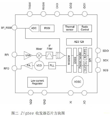 圖二 Zigbee 收發(fā)器芯片方塊圖