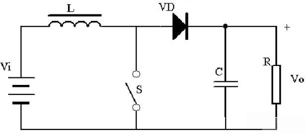 升壓變換器原理圖如圖2所示,當開關閉合時,輸入電壓加在電感上,此時電感由電壓(Vi)勵磁,電感增加的磁通為:(Vi)*Ton。