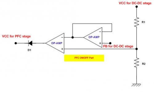 圖1:建議的實(shí)現(xiàn)PFC級間歇工作的電路