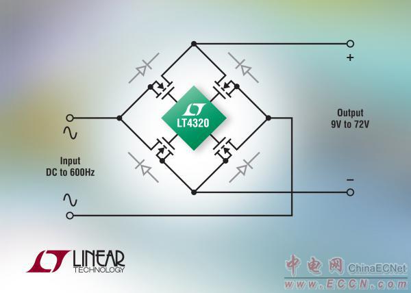 Linear推出一款用于 9V 至 72V系統(tǒng)的理想二極管橋控制器 LT4320。其采用低損耗 N 溝道 MOSFET 替代了全波橋式整流器中的全部 4 個二極管,以顯著地降低功率耗散并增加可用電壓。由于電源效率的提升免除了笨重的散熱器,因此縮減了電源尺寸。通過免除二極管橋中固有的兩個二極管壓降提供了額外的裕度,低電壓應(yīng)用將從中獲益。與傳統(tǒng)的替代方案相比,MOSFET 橋可實現(xiàn)具有高空間利用率和電源效率的整流器設(shè)計?刂破鞯墓ぷ黝l率范圍為 DC 至 600Hz。