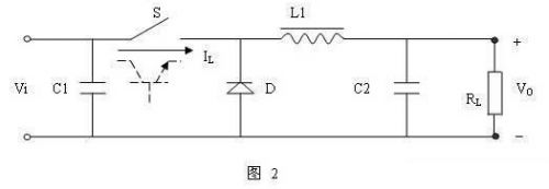 開關(guān)電源就是采用功率半導(dǎo)體器件作為開關(guān)元件,通過周期性通斷開關(guān),控制開關(guān)元件的占空比來調(diào)整輸出電壓。開關(guān)元件以一定的時(shí)間間隔重復(fù)地接通和斷開,在開關(guān)無件接通時(shí)輸入電源Vi通過開關(guān)S和濾波電路向負(fù)載RL提供能量,當(dāng)開關(guān)S斷開時(shí),電路中的儲(chǔ)能裝置(L1、C2、二極管D組成的電路)向負(fù)載RL釋放在開關(guān)接通時(shí)所儲(chǔ)存的能量,使負(fù)載得到連續(xù)而穩(wěn)定的能量。