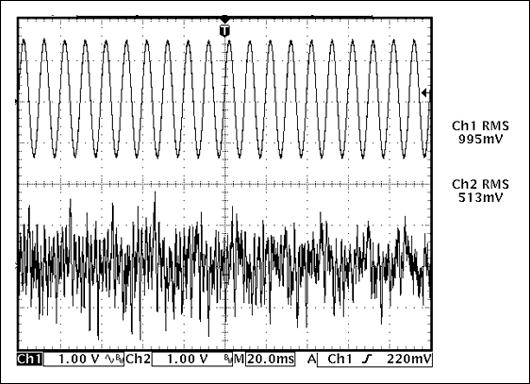 圖1. 正弦波的RMS值高于音頻信號(hào)的RMS值,意味著用正弦波測(cè)試時(shí),D類放大器的發(fā)熱更大 (點(diǎn)擊放大圖片)
