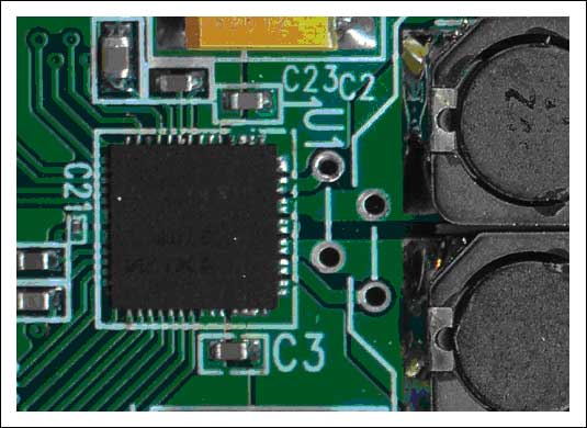 盡量加寬所有與器件的連線,這將有益于改善系統(tǒng)的散熱性能。雖然IC的引腳并不是主要的散熱通道,但實(shí)際應(yīng)用中仍然會(huì)有少量發(fā)熱。圖3給出的PCB中,采用寬的連線將D類放大器的輸出與圖右側(cè)的兩個(gè)電感相連。在這種情況下,電感的銅芯繞線也可為D放大器提供額外的散熱通道。雖然對(duì)整體熱性能的改善不到10%,但這樣的改善卻會(huì)給系統(tǒng)帶來兩種截然不同的結(jié)果 - 即使系統(tǒng)具備較理想的散熱或出現(xiàn)較嚴(yán)重的發(fā)熱。
