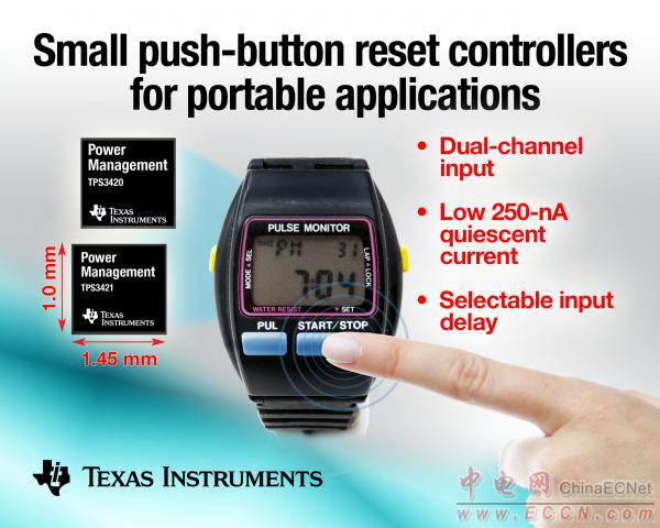 TI宣布面向計步器、健身腕表 (fitness bands)、手機(jī)以及平板電腦等空間有限的低功耗應(yīng)用推出兩款微型按鈕復(fù)位控制器。該雙通道 TPS3420 與 TPS3421 功耗低,提供可選復(fù)位時間延遲,可增強(qiáng)系統(tǒng)穩(wěn)定性。