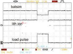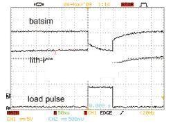 圖2,不使用反饋電容器時,模擬器與大型鋰離子電池的響應(yīng)非常吻合。