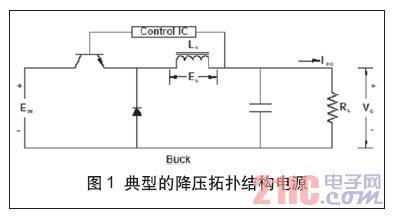 圖1所示為一個降壓拓撲結構開關電源的架構,該構架廣泛應用于輸出電壓小于輸入電壓的開關電源系統(tǒng)。在典型的降壓拓撲結構電路中,當開關(Q1)閉合時,電流開始通過這個開關流向輸出端,并以某一速率穩(wěn)步增大,增加速率取決于電路電感。根據(jù)楞次定律,di=E*dt/L,流過電感器的電流所發(fā)生的變化量等于電壓乘以時間變化量,再除以這個電感值。由于流過負載電阻RL的電流穩(wěn)定增加,輸出電壓成正比增大。
