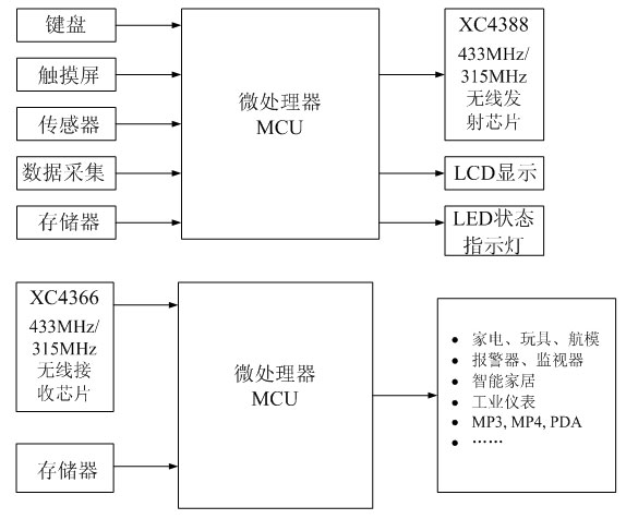 基于深圳市黌軟電子有限公司的XC4388/XC4366系列無(wú)線收發(fā)芯片設(shè)計(jì)的一款完整的、低功耗、低成本的無(wú)線收發(fā)解決方案。主要設(shè)定為315MHz/433MHz頻段,有效距離可達(dá)100米?梢愿鶕(jù)客戶具體的產(chǎn)品需求,靈活進(jìn)行全定制的模塊設(shè)計(jì),極大地縮短終端產(chǎn)品的開(kāi)發(fā)周期。