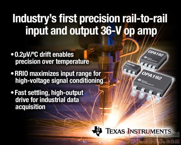 TI宣布推出業(yè)界首款 36 V 軌至軌輸入輸出 (RRIO) 運(yùn)算放大器,其可在無(wú)需使用自動(dòng)歸零技術(shù)的情況下實(shí)現(xiàn)高精度失調(diào)電壓與漂移。該 OPA192 在整個(gè)規(guī)定溫度范圍內(nèi)可實(shí)現(xiàn)穩(wěn)定的失調(diào)電壓漂移,無(wú)需系統(tǒng)級(jí)校正。