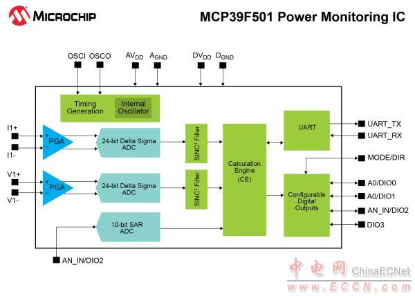 Microchip宣布推出一款全新的功率監(jiān)控IC MCP39F501。該器件是一款高度集成的單相功率監(jiān)控IC,適用于交流電源的實時測量。它包含兩個24位Δ-Σ模數(shù)轉(zhuǎn)換器(ADC)、一個16位計算引擎、EEPROM存儲器以及一個靈活的兩線接口。由于集成了低漂移基準(zhǔn)電壓,再加上每個測量通道的SINAD性能達(dá)94.5 dB,新器件在4000:1的動態(tài)范圍內(nèi)僅有0.1%的誤差,便于用戶實現(xiàn)精確的設(shè)計。