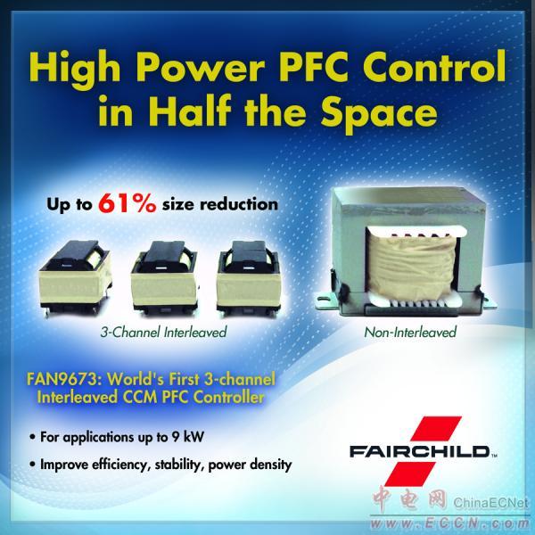 FAN9673 是業(yè)內(nèi)首款交錯式連續(xù)導(dǎo)通模式 (CCM) PFC 控制器可采用最小的電感和最低額定功率開關(guān)器件進(jìn)行大功率 PFC 控制,從而延長電容使用壽命。