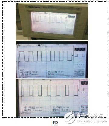 如圖4所示,這是其中一路PWM波的控制信號,通過手機(jī)端控制其占空比,用示波器測出其波形。