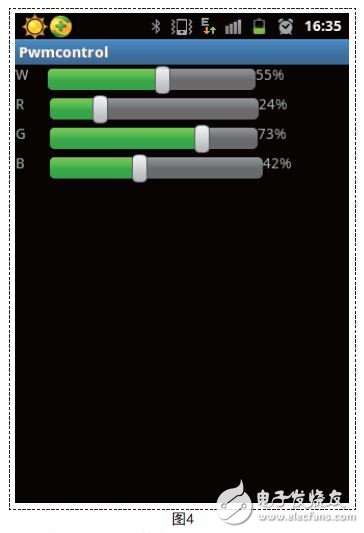 首先創(chuàng)建一個用于控制信號的類publicclass PwmcontrolActivity extends Activity{},里面包含創(chuàng)建界面的類函數(shù)public voidonCreate(BundlesavedIn stan ceState){},發(fā)送控制信號類函數(shù)public void onStop TrackingTouch(SeekBar seekBar){}。